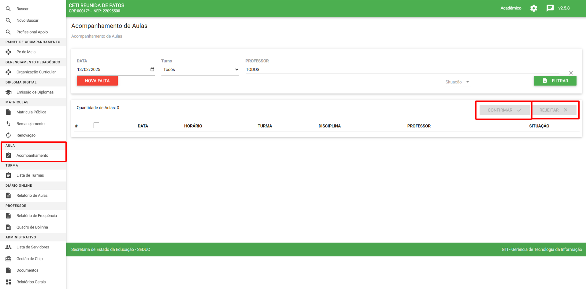 - Objetivo: Realizar a aprovação ou rejeição da aula registrada pelo professor