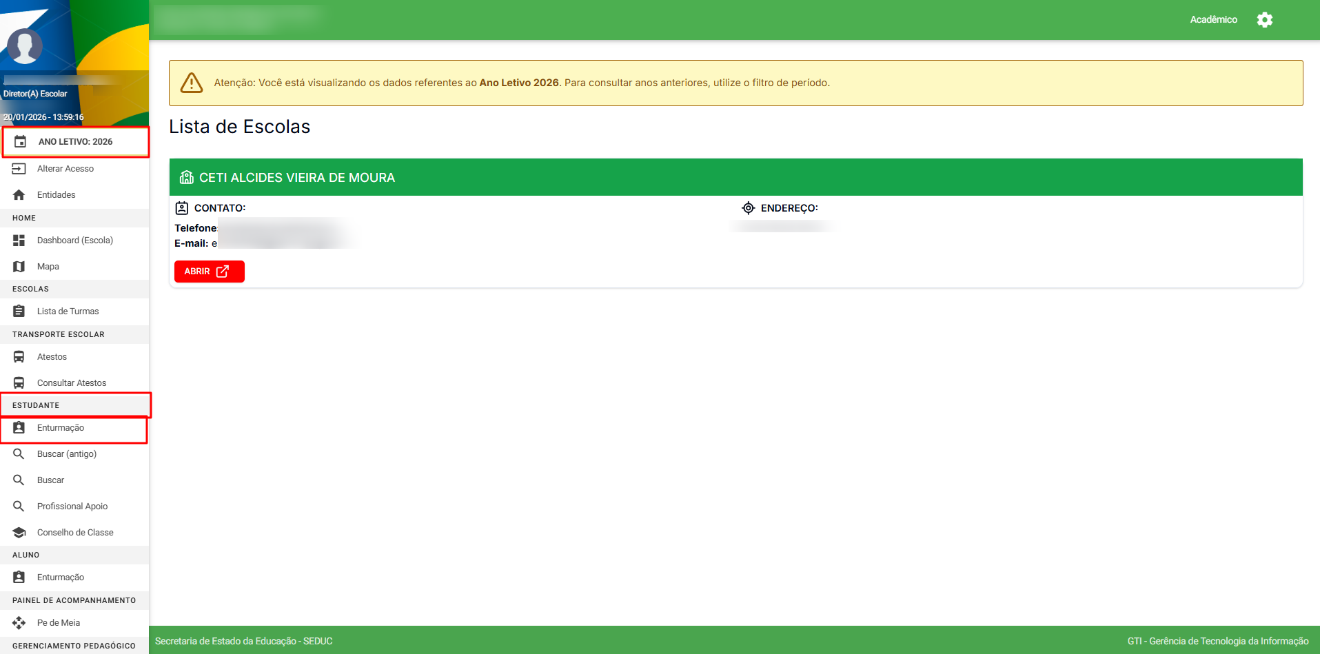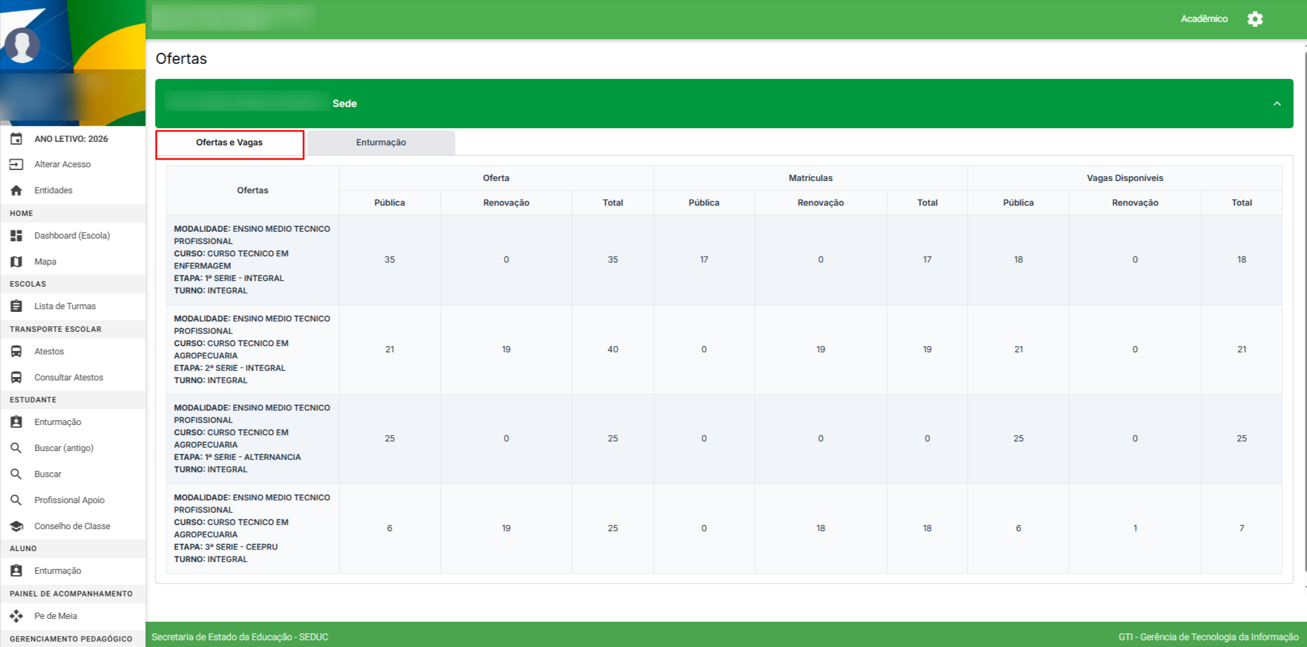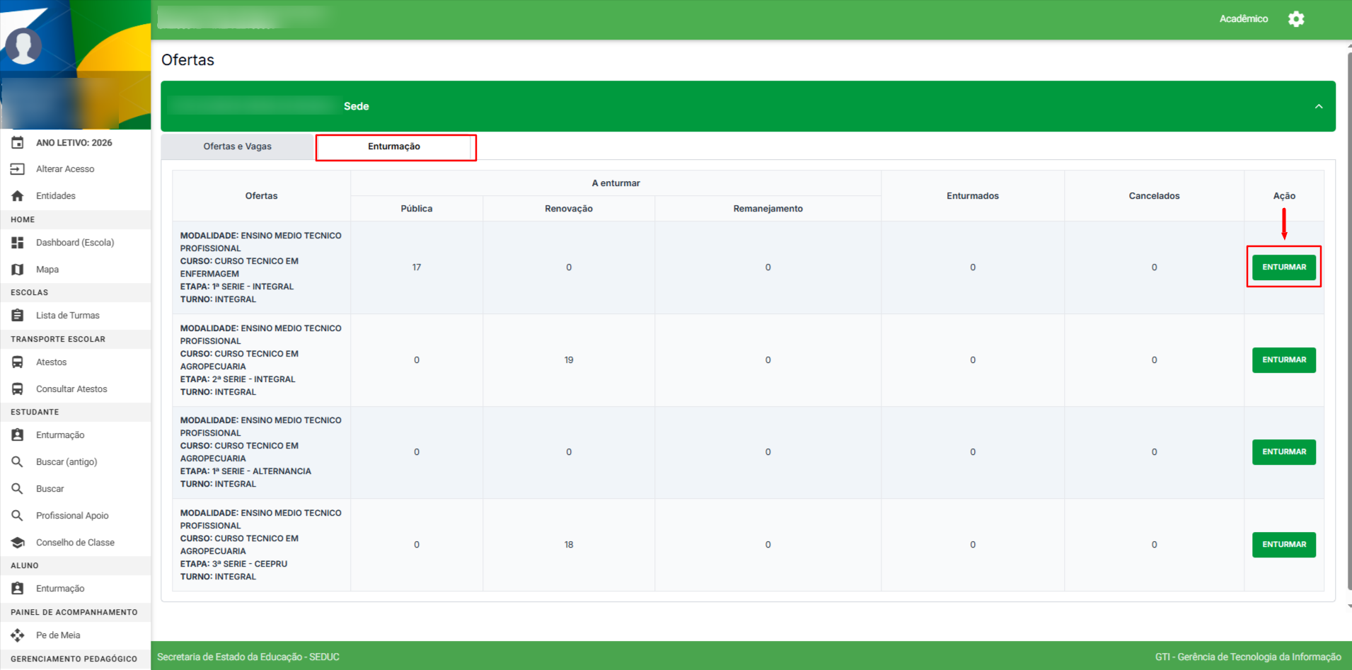- Menu de Acesso: Estudante > Enturmação > Enturmar