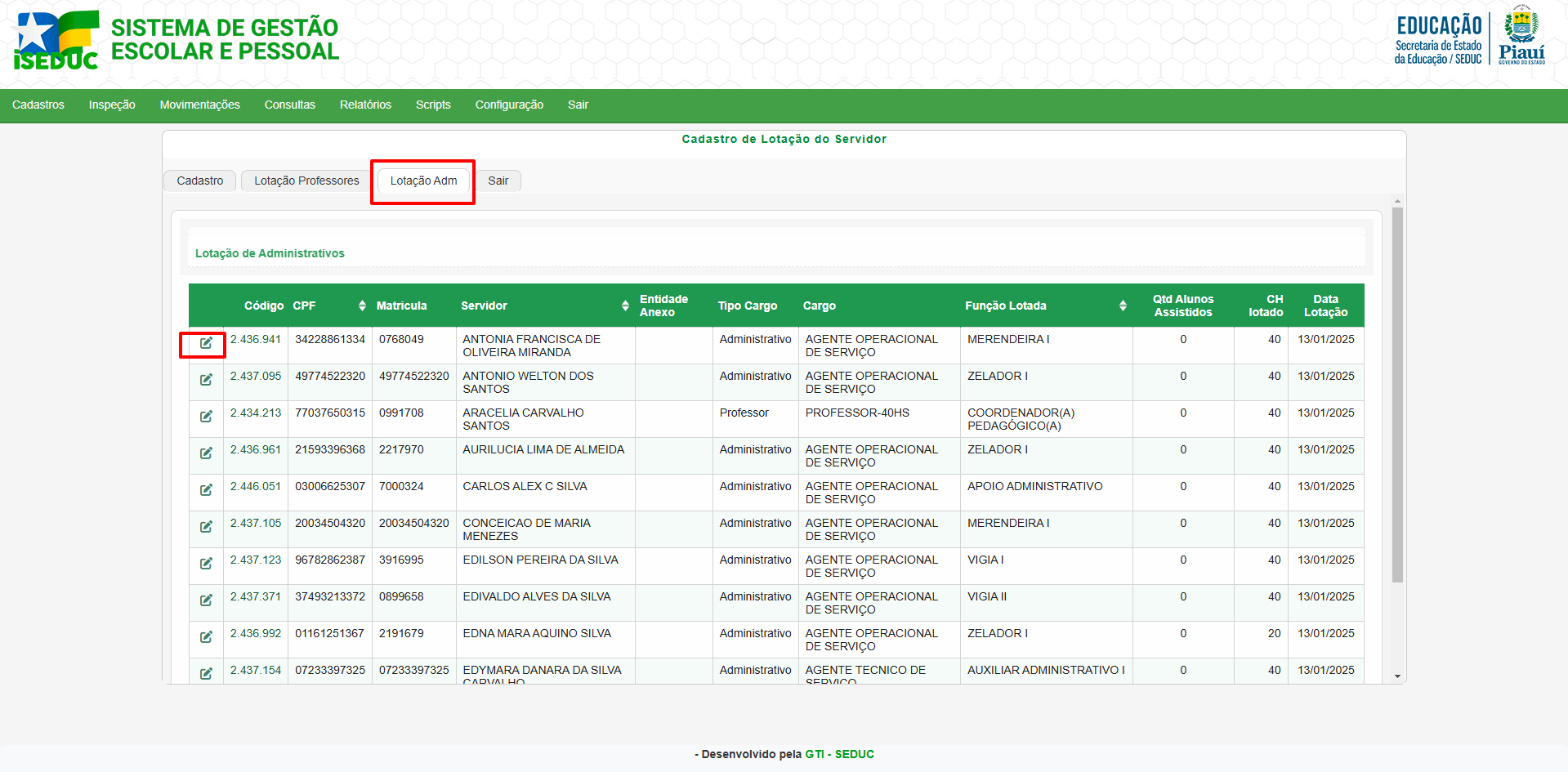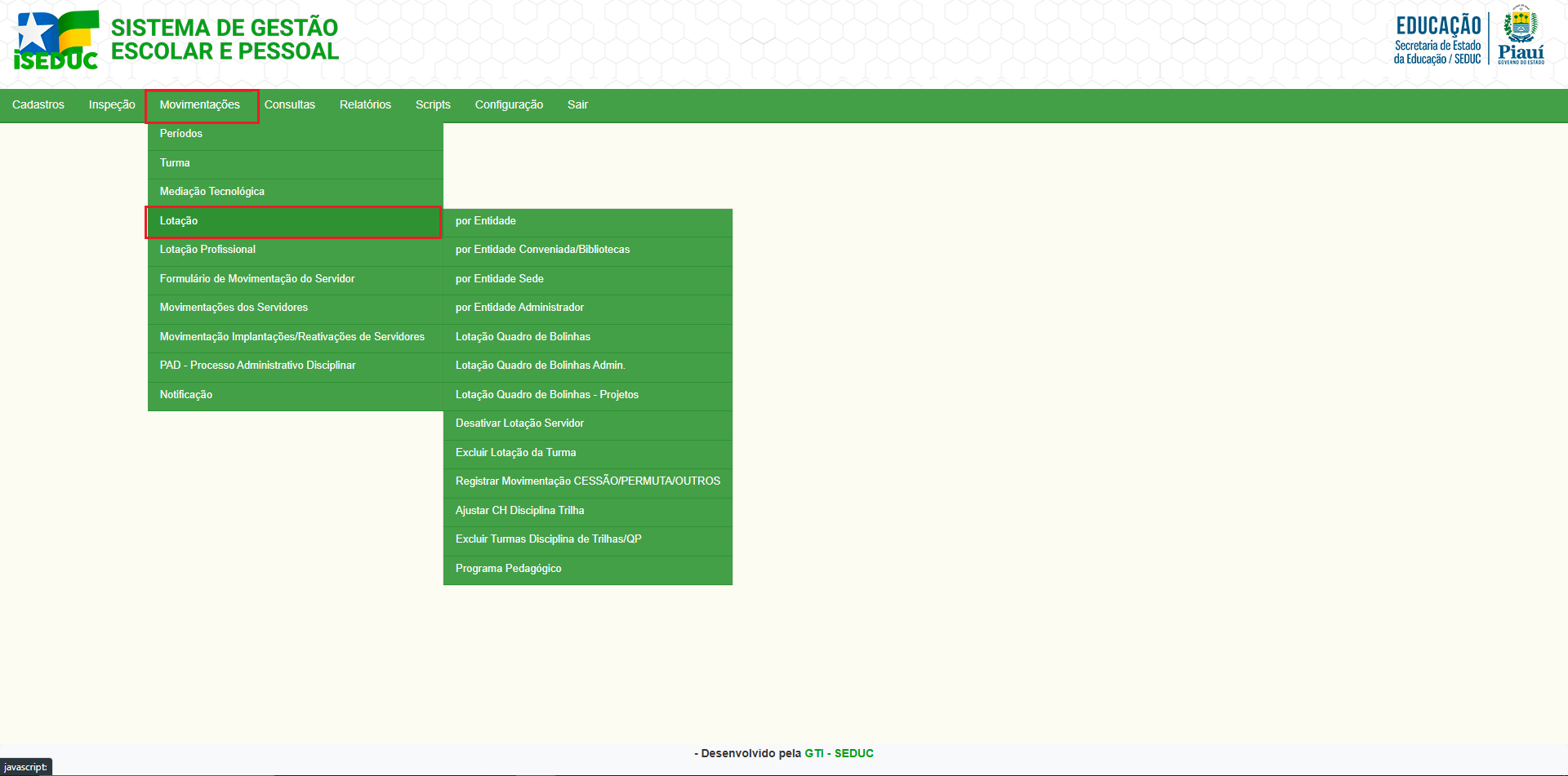 • Menu de Acesso: Movimentações > Lotação