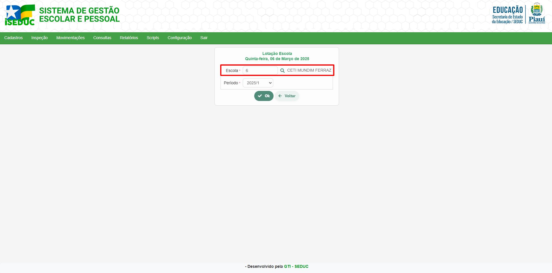 • Sistema: iSEDUC Gestão