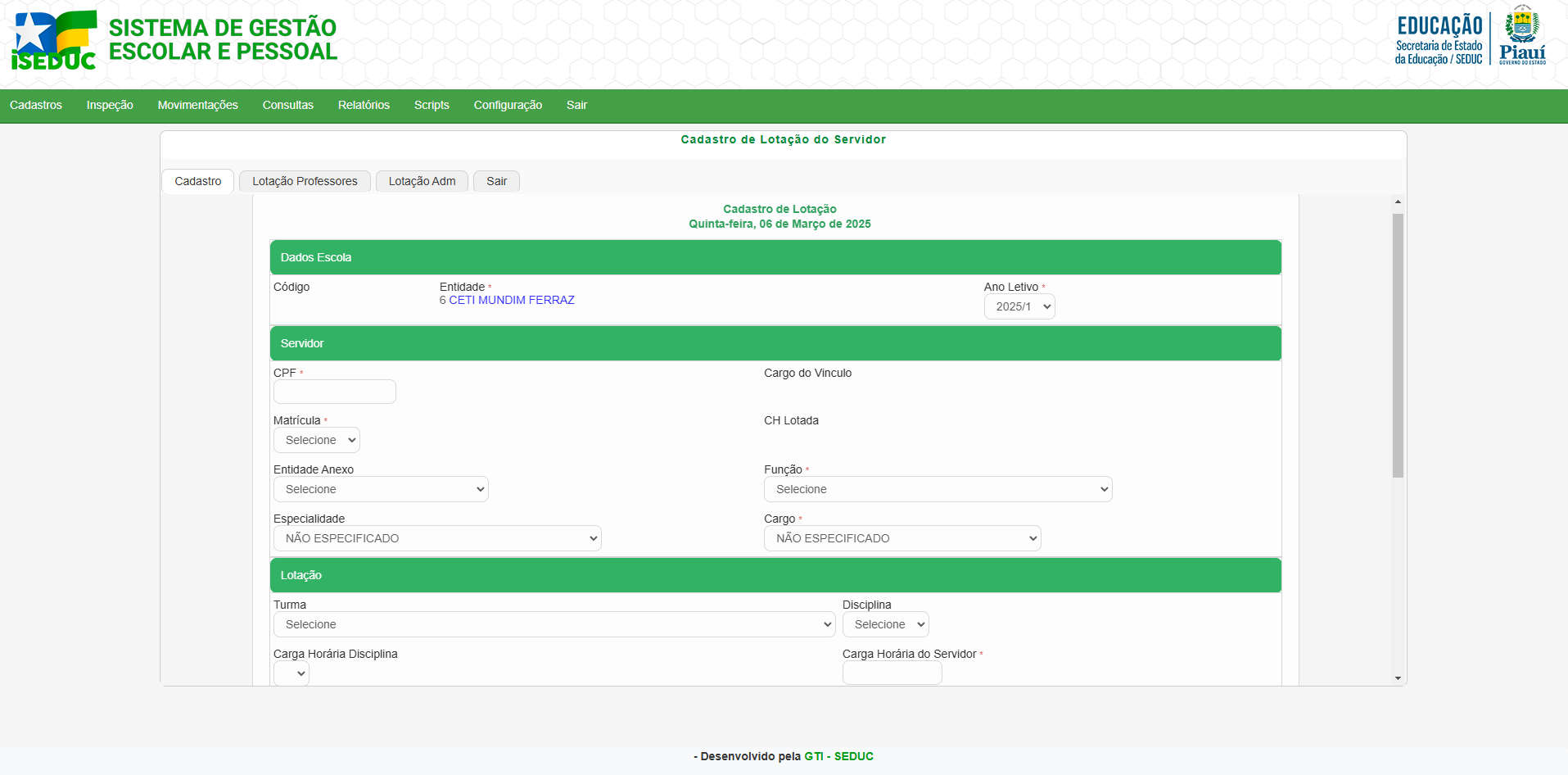 2. Cadastro de Lotação do Servidor