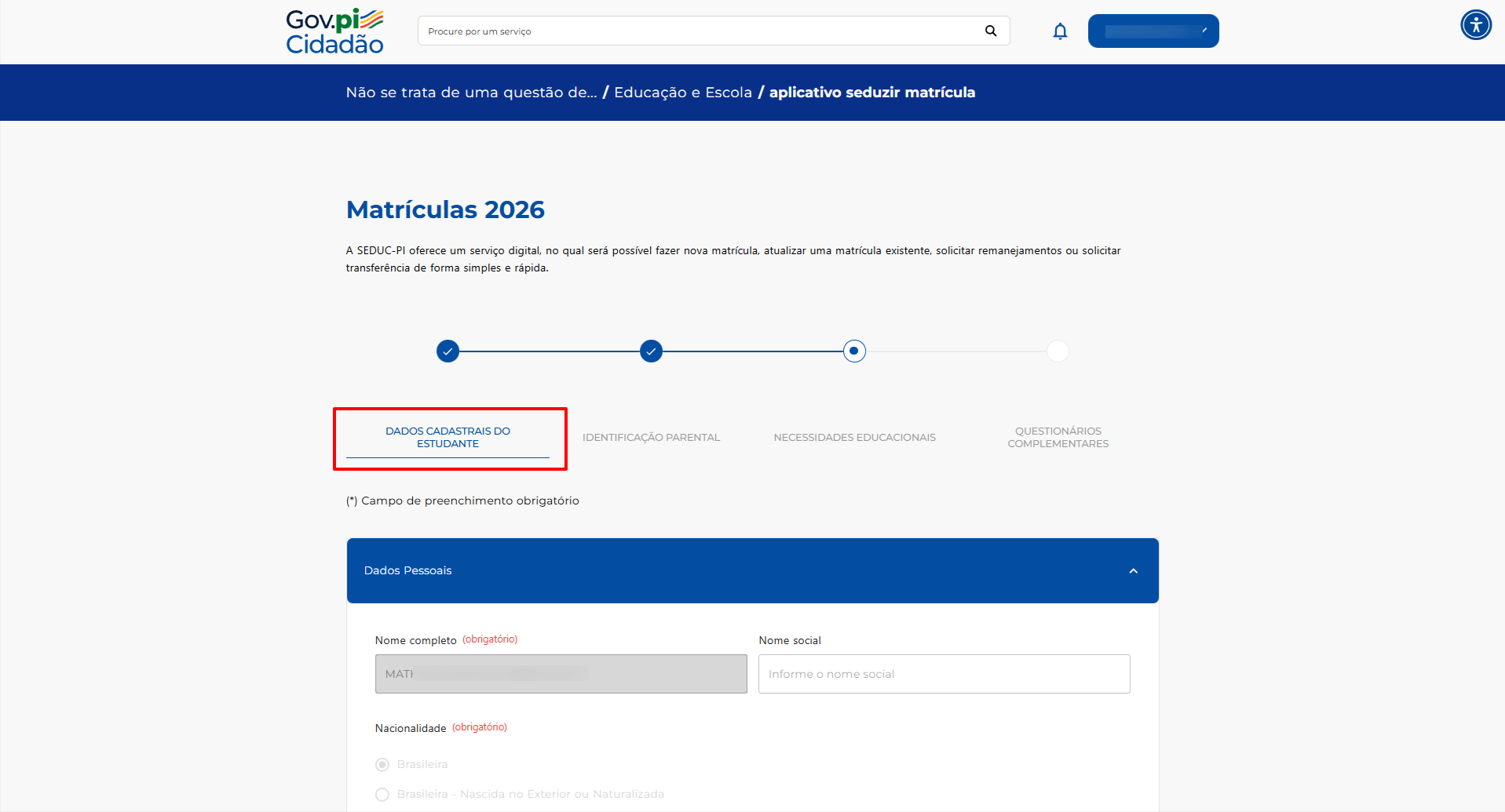 4.1 Dados Cadastrais do Estudante