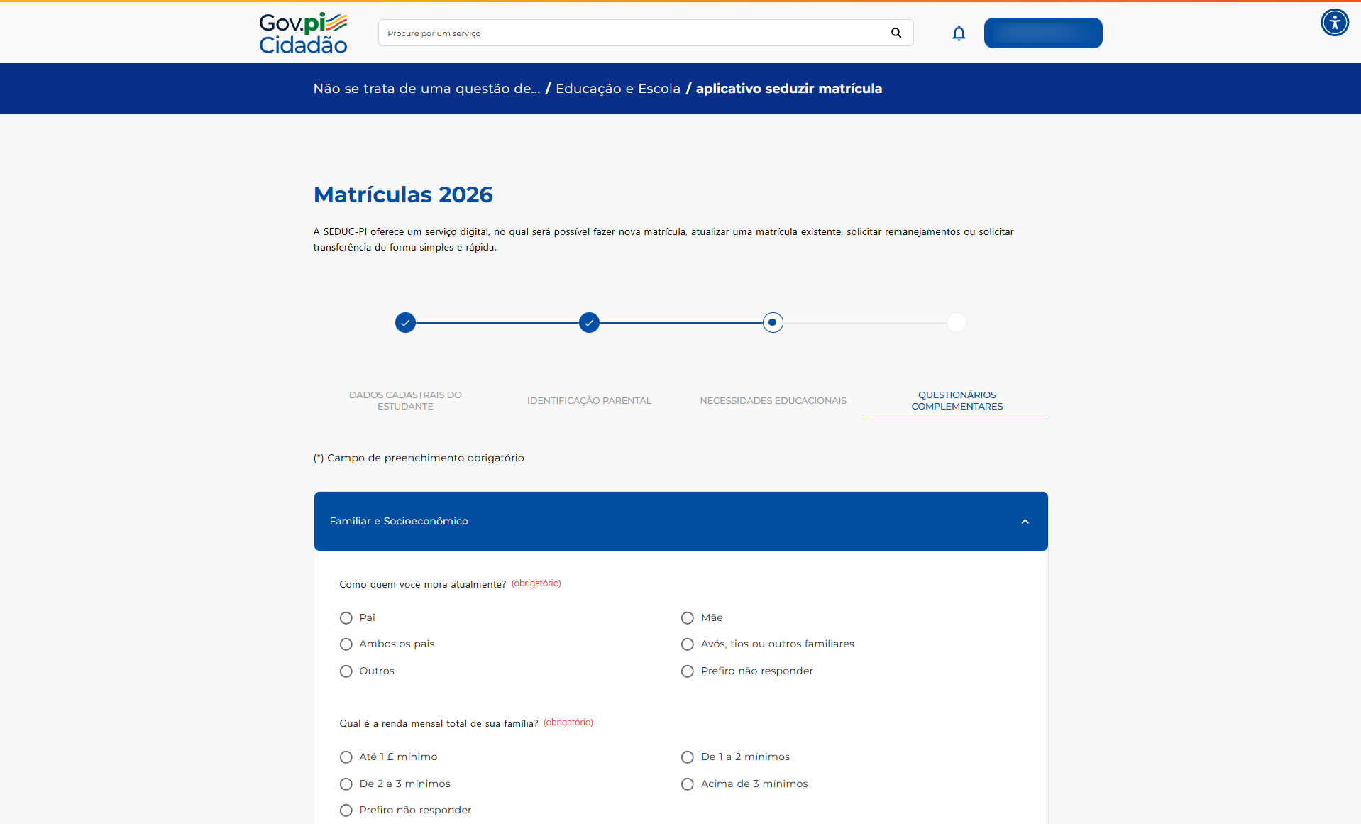 - Situação familiar e socioeconômica