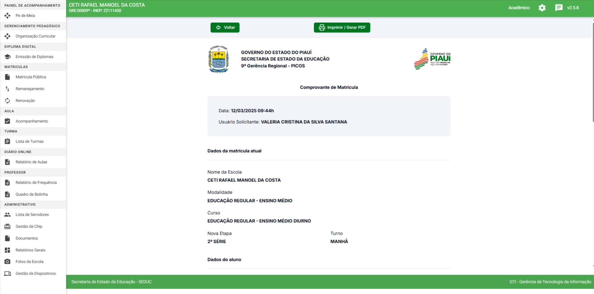 • Objetivo: Emitir Comprovante de Matrícula do Estudante