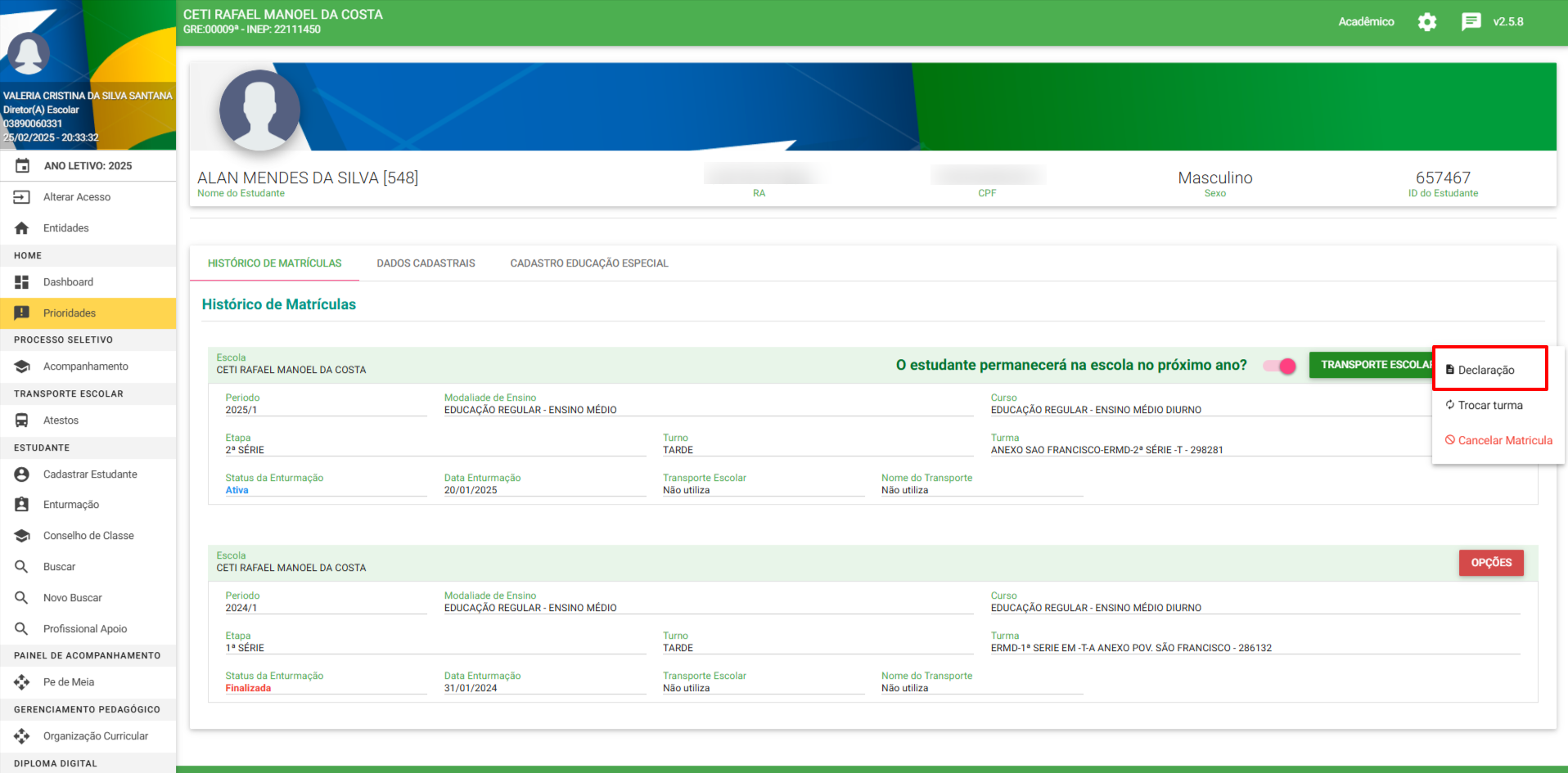 Para emitir o Comprovante de Conclusão, o aluno precisa estar com o status de Concluído no sistema.