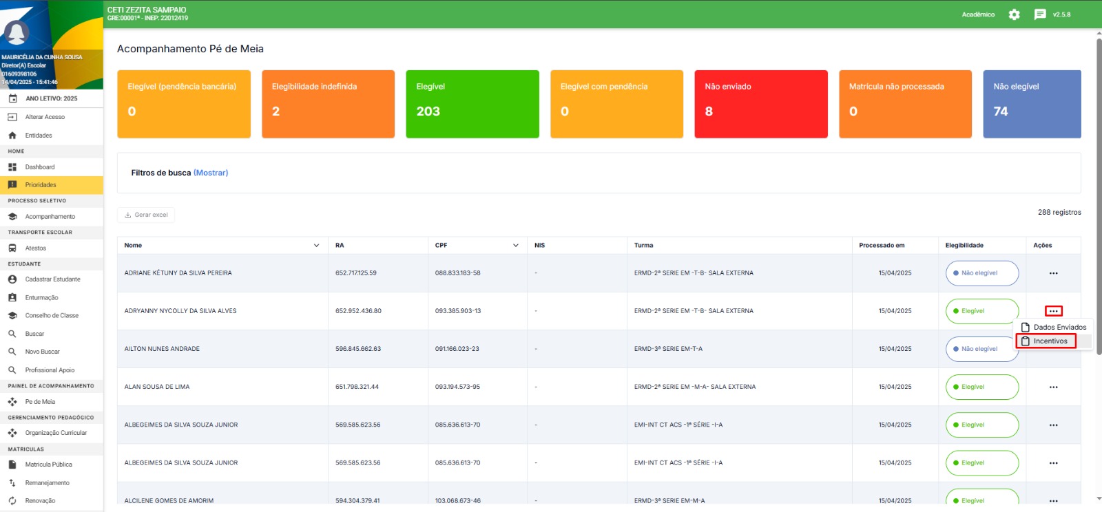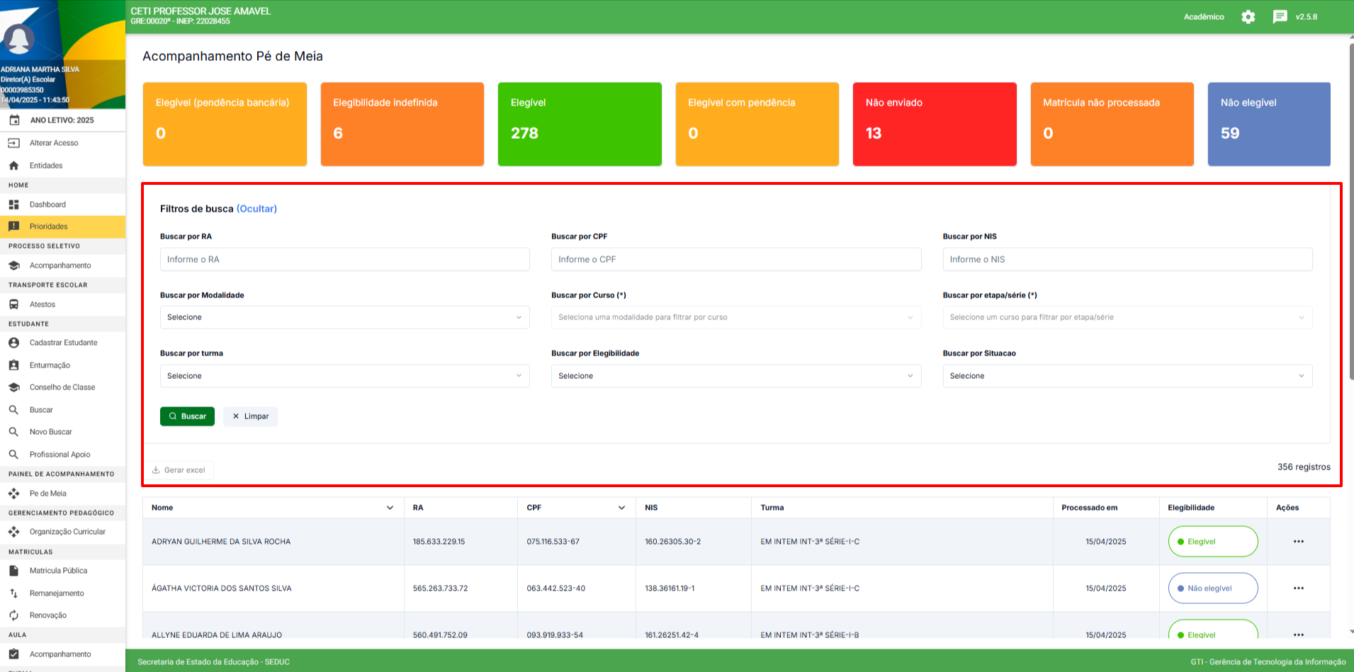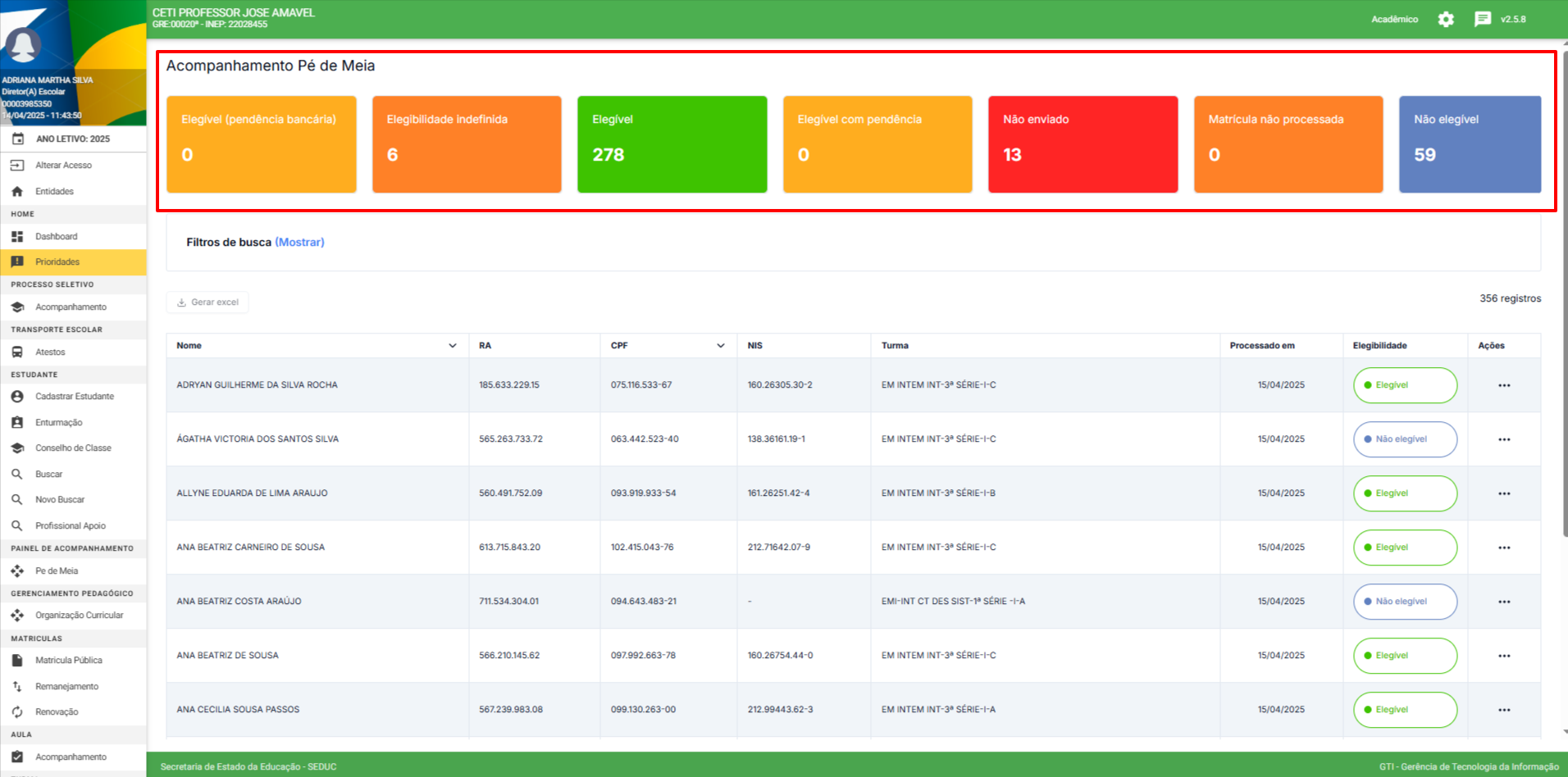 - Menu de Acesso: Painel de Acompanhamento > Pé-de-meia